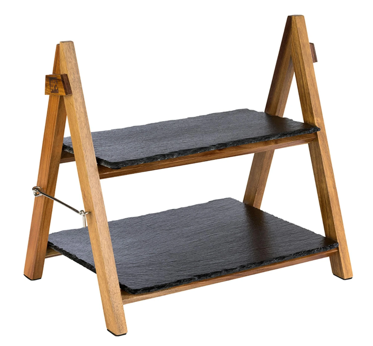 Serviergestell aus Holz inkl. 2 Schieferplatten. Kombinierbar mit jeder Platte in den Größen GN 1/3 und GN 1/2. Platzsparend zusammenklappbar, abwaschbar.